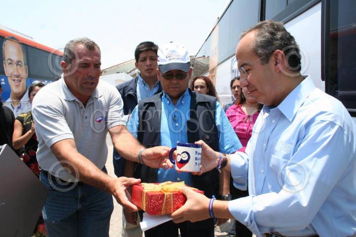 CELAYA, GUANAJUATO 28ABRIL2006.- Felipe Calderón, candidato del PAN a la Presidencia de la República, se reunio con distribuidores de alimentos, en ese municipio, como parte de su gira de campaña. FOTO: Alfredo Guerrero/CUARTOSCURO.COM