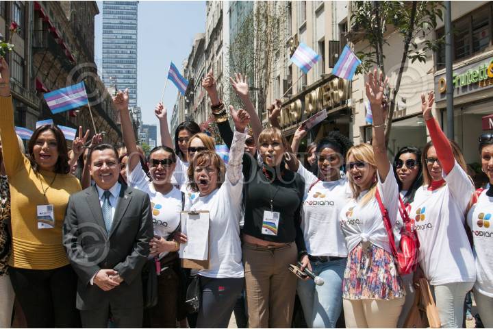 MÉXICO, D.F., 30MARZO2015.- Personas transexuales, encabezadas por Diana Sánchez Barrios se reunieron sobre la calle de Madero para ofrecer una conferencia de prensa en compañía de Manuel Granados Manuel Covarrubias, presidente en la ALDF, para dar detalles sobre los trámites que deben hacer dichas personas para solicitar su acta de nacimiento donde aparezca el género al que pertenecen y no su origen sexual. FOTO: DIEGO SIMÓN SÁNCHEZ /CUARTOSCURO.COM