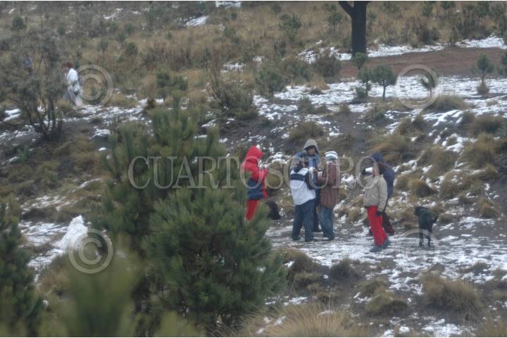 AMECAMECA, ESTADO DE MÉXICO, 10ENERO2010.- Visitantes acuden al parque Nacional Iztaccihuatl-Popocatepetl para divertirse con la nieve que se encuentra en el lugar debido a que en los últimos días ha causado una masa de aire polar proveniente del norte del pais. FOTO: MARIO NULO/CUARTOSCURO.COM