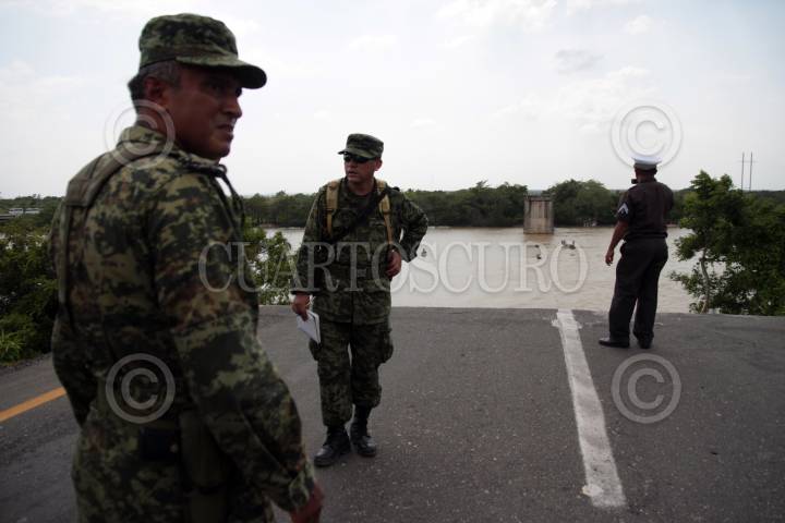 HUIMANGUILLO, TABASCO, 17JULIO2009.- Autoridades de los estados de Tabasco y Veracruz realizan labores de rescates en busquedas de víctimas en el río Tonala que divide a ambos entidades federativas y en donde colapso el puente que lleva el mismo nombre del rio. Hasta estas horas las autoridades reportan la muerte de una persona. FOTO: MARCO POLO GUZMÁN HERNÁNDEZ/CUARTOSCURO.COM