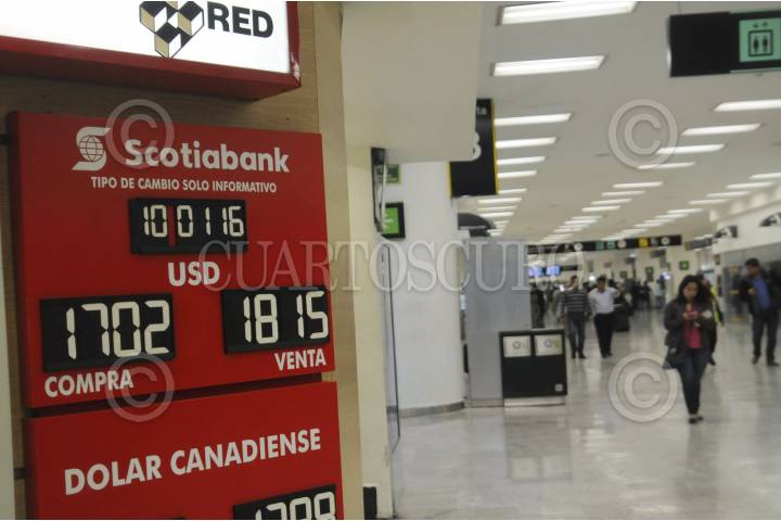 MÉXICO, D.F., 10ENERO2015.- Algunas sucursales bancarias en el aeropuerto de la ciudad de México, vendieron el dólar en un máximo de 18.20 pesos, y lo adquirieron en un precio mínimo de 16.90 pesos. FOTO: DIEGO SIMÓN SÁNCHEZ /CUARTOSCURO.COM
