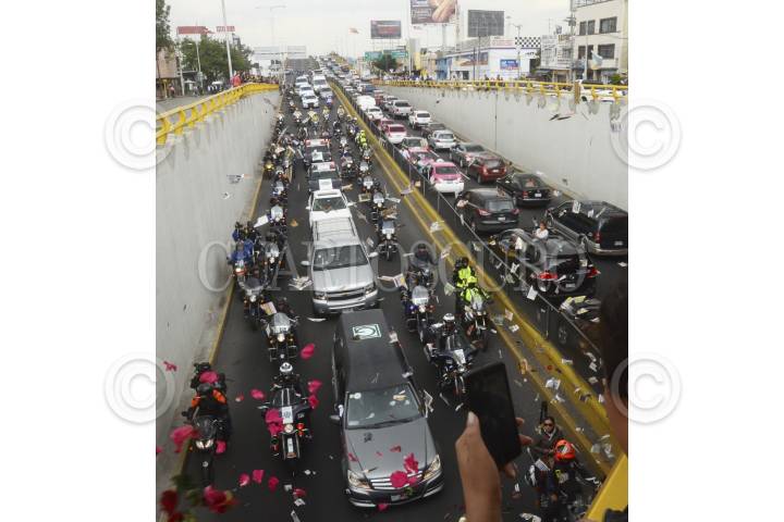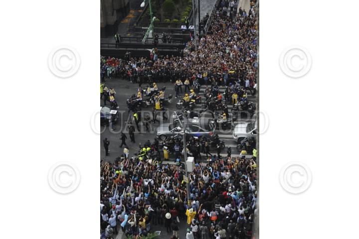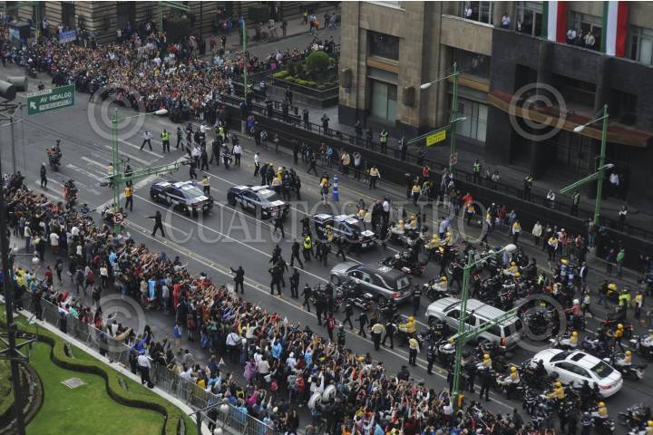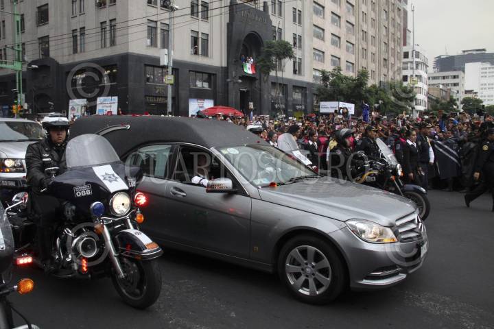 CIUDAD DE MÉXICO, 05SEPTIEMBRE2016.- Miles de personas despidieron la urna con las cenizas del cantautor Juan Gabriel, durante su traslado del Aeropuerto de la Ciudad de México al Palacio de Bellas Artes, donde se le rendirá un homenaje. FOTO: ANTONIO CRUZ /CUARTOSCURO.COM