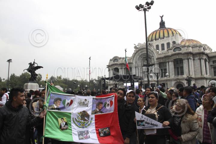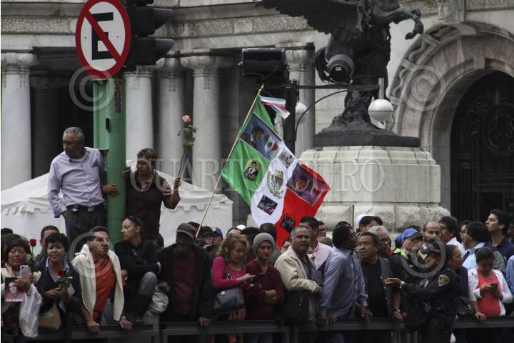 CIUDAD DE MÉXICO, 05SEPTIEMBRE2016.- Las cenizas de Juan Gabriel llegaron en un carroza al Palacio de Bellas Artes, en donde sus seguidores, amigos y familiares le rinden un homenaje póstumo. Autoridades del INBA han anunciado que el homenaje se prolongará hasta el día de mañana, para que la gente se despida de ídolo. FOTO: ARMANDO MONROY /CUARTOSCURO.COM