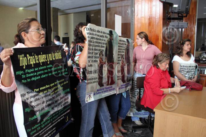 VILLAHERMOSA, TABASCO, 28FEBRERO2006.- Alrededor de 30 personas, se manifestaron con pancartas en la antesala del Congreso del Estado, donde pideron igualdad de derechos para las familias, debido a que de cada unión matrimonial hay cinco divorcios. FOTO: Marco Polo Guzmán/CUARTOSCURO.COM
