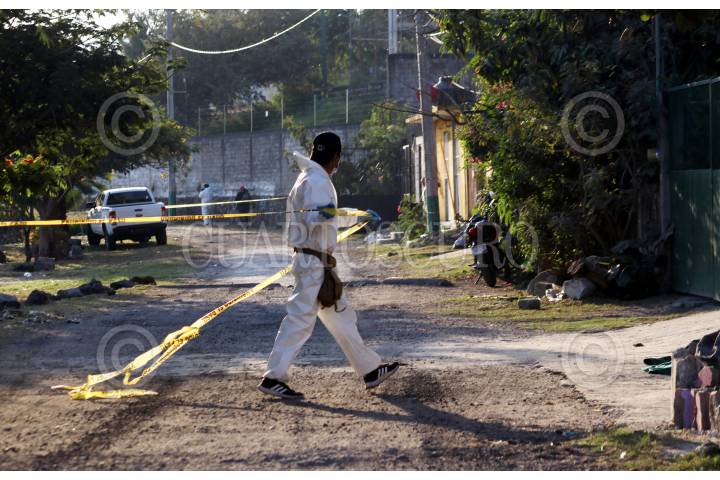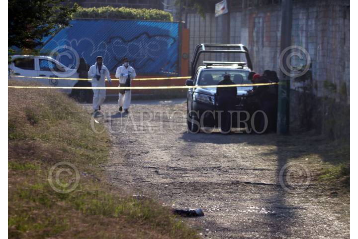 Policias de Morelos resguardan el sitio donde fueron ultimados dos jovenes a balazos durante la madrugada.