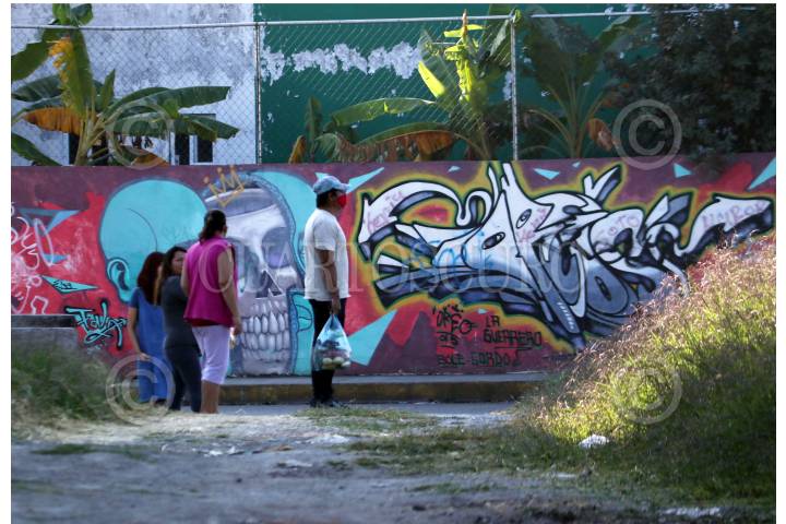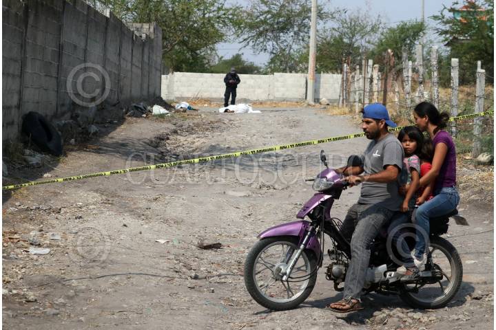 Personas que salen a realizar sus actividades cotidianas se detienen a observar una escena de crimen donde fueron asesinados dos jovenes.