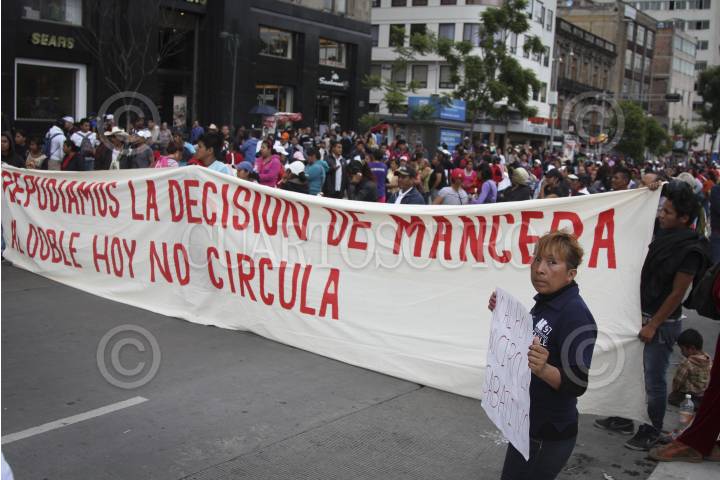 MÉXICO, D.F., 30JUNIO2014.- Integrantes de organizaciones sociales, marcharon del Ángel de la Independencia al zócalo capitalino donde exigieron que el gobierno del Distrito Federal revoque el doble no circula para vehículos que cuenten con más de 15 años de antigüedad. FOTO: SAÚL LÓPEZ /CUARTOSCURO.COM