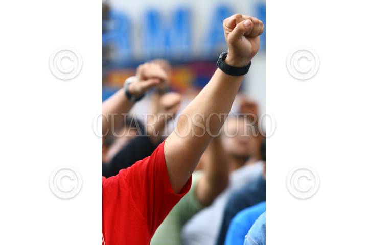 MÉXICO, D.F., 11OCTUBRE2009.- Cientos de personas se dieron cita a las afueras del Sindicato Mexicano de Electricistas (SME), donde se realizó una sesión extraordinaria encabezada por su líder sindical Martín Esparza, en la cuál se dió a conocer que acudirán al Congreso de la Unión para solicitar apoyo de legisladores a fin de evitar el cierre de Luz y Fuerza del Centro y su liquidación. FOTO: SÁSHENKA GUTIÉRREZ/CUARTOSCURO.COM