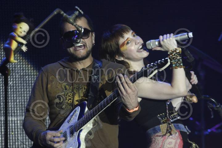 SAN ANDRES CHOLULA, PUEBLA, 13FEBRERO2011.- El grupo mexicano de rock Zoé, se presentó en concierto ante cientos de espectadores que se dieron cita en el Bulldog Café. El grupo liderado por León Larregui iniciaron su espectáculo con "Reptilectric" seguido de los temas que los posicionaron en el gusto del público como "Love, No me destruyas, Nada, Poly" entre otros. FOTO: FRANCISCO GUASCO/CUARTOSCURO.COM