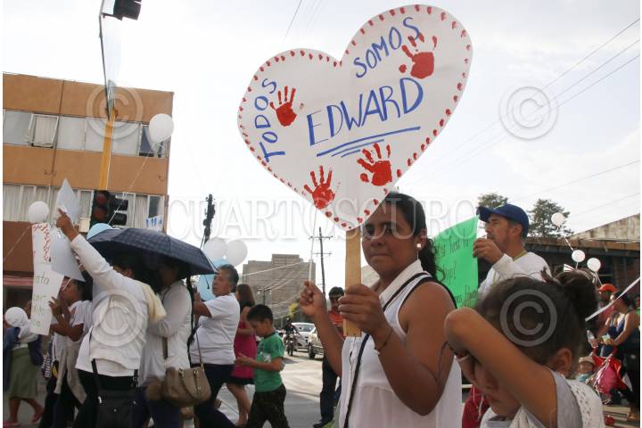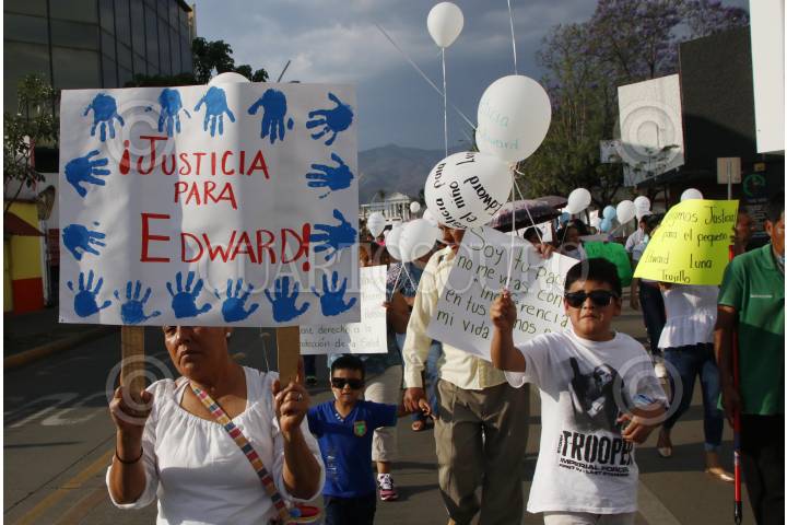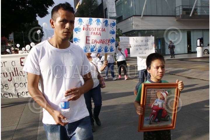 OAXACA, OAXACA, 08ABRIL2018.- Familiares y amigos de Edward Luna Trujillo de 3 años de edad quien falleciera el pasado mes de noviembre al ser intervenido quirúrgicamente debido a una fractura en el codo izquierdo marcharon la tarde de este domingo en la ciudad de Oaxaca para exigir justicia por la muerte del menor. Los familiares acusaron una presunta negligencia por lo cual presentaron una denuncia, el resultado de esto fue que la Fiscalía General del Estado solicitó ante el juez una orden de aprehensión por el delito de homicidio doloso con agravante de responsabilidad médica. En tal sentido los familiares demandaron al Tribunal Superior de Justicia del Estado actuar de forma imparcial e imponer justicia por el deceso del menor sin dejarse influenciar por las manifestaciones de los integrantes de la comunidad médica en el estado o el resto del país. FOTO: ARTURO PÉREZ ALFONSO/ CUARTOSCURO.COM