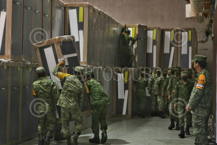 El ejército coloca los domésticos para prepararlos y entregarlos este lunes.