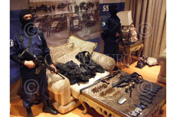 MÉXICO D.F. 25ENERO2008.- Elementos de la Policia Federal catearon mas de cuatro domicilios relacionados con Arturo Beltran Leyva conciderado por la SSP Federal, lider de la organización del cártel del pacifico cuyos centros de operación se localizan en el Estado de México, Morelos y el Distrito Federal. En dichos inmuebles se localizaron armas, yoyas, vehiculos, equipo de computo y granadas. FOTO: SSP/CUARTOSCURO.COM