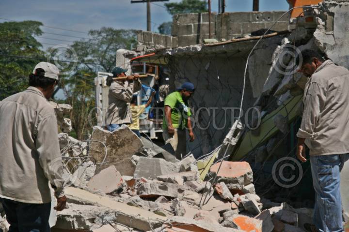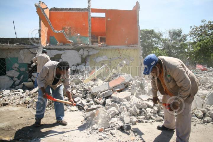 VILLAHERMOSA, TABASCO, 22FEBRERO2010.- Hasta el día de hoy van alrededor de 23 casas demolidas, lo que representa un seis por ciento de un total de 371 domicilios que tienen que destruidas al encontrase en zona de peligro por constante peligro de inundación en la colonia Casa Blanca. FOTO: MARCO POLO GUZMÁN HERNÁNDEZ/CUARTOSCURO.COM