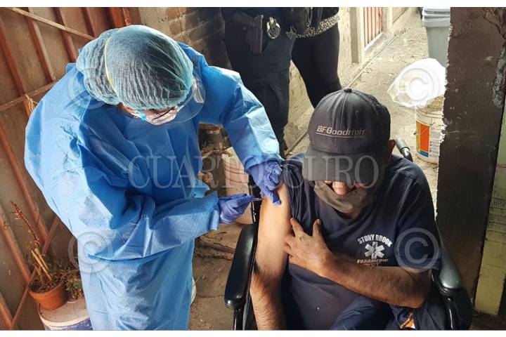 Personas de la tercera edad comenzaron a ser vacunados contra el Covid-19 en sus domicilios, por brigadas de la Secretaría de Salud.