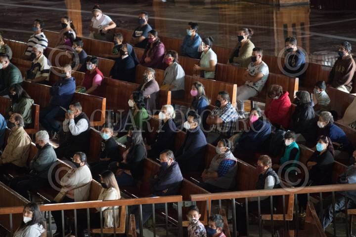 MÉXICO, D.F., 17MAYO2009.- Fieles acuden con cubre bocas a escuchar la misa dominical oficiada por el cardenal Norberto Rivera Carrera en la Catedral Metropolitana. FOTO: RODOLFO ANGULO/CUARTOSCURO.COM