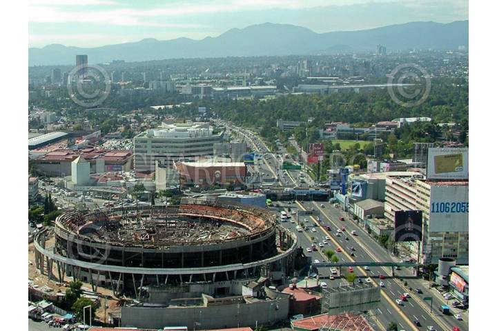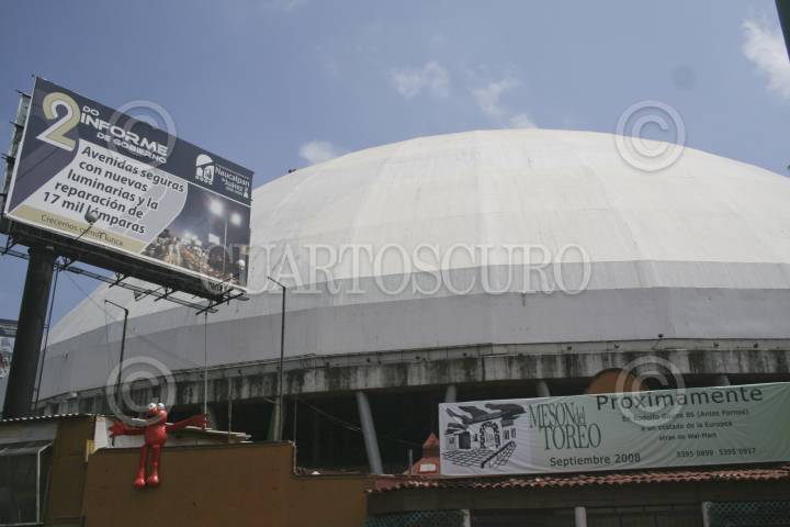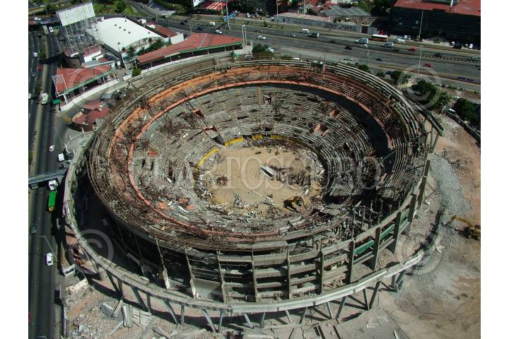 NAUCALPAN, ESTADO DE MÉXICO, 23OCTUBRE2008.- Vista aerea del Toreo de Cuatro Caminos en su desmantelamiento. FOTO: MARIO NULO/CUARTOSCURO.COM
