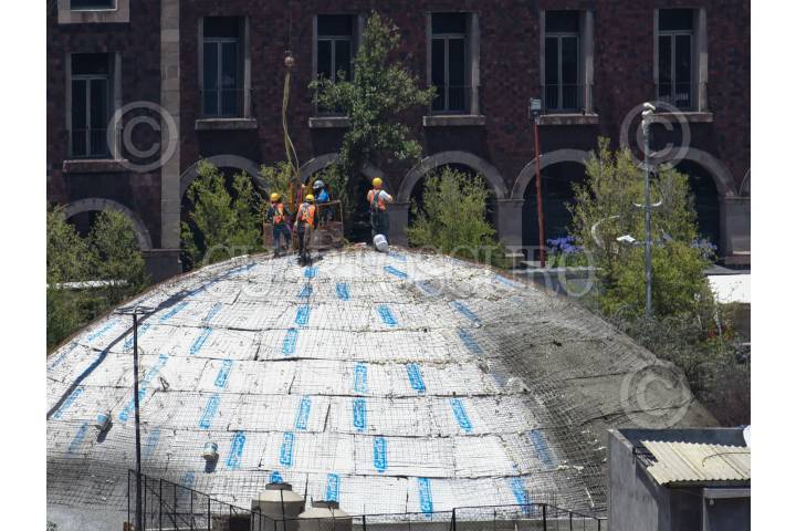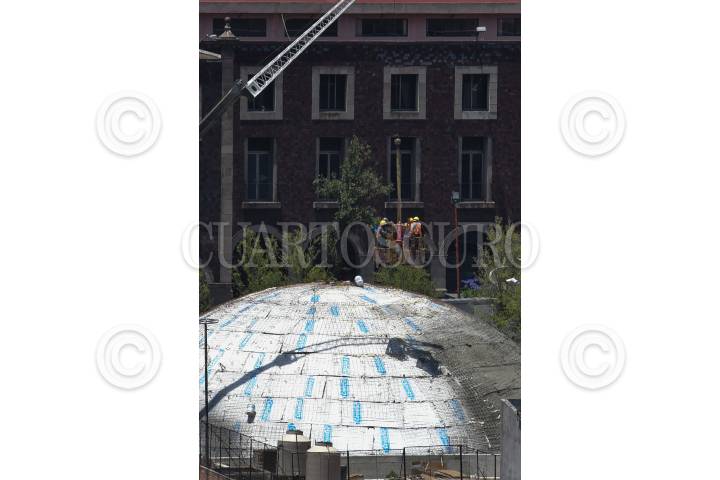 Trabajos en el domo del Planetario en el Parque de las Ciencias en Toluca.