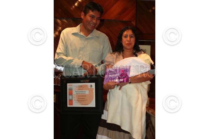 MÉXICO D.F. 23MAYO2007.- Ana Laura Melendez Cruz, junto a su hija Libni Flores Melendez, su hermana Nuria Jocelyn Melendez y su esposo Jesus Flores Navarrete, acudieron a la secretaria de salud, por la entrega del reconocimiento que el sector salud le ofrecío, de manos de Antonio Marín Lopez, director general del centro nacional de la transfución, por ser la mamá número mil en donar su cordon umbilical para efectos de tratamientos medicos como el de la leucemia infantil. FOTO: GUILLERMO MARTÍNEZ/CUARTOSCURO.COM