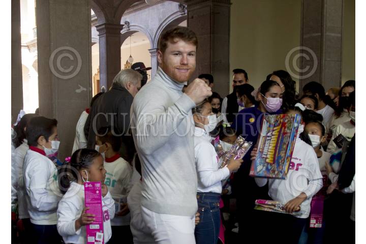 El boxeador Saúl "El Canelo" Álvarez arribó al Palacio de Gobierno conduciendo un trailer con más de 5mil juguetes para niños de escasos recursos acompañado del empresario Carlos Bremer.