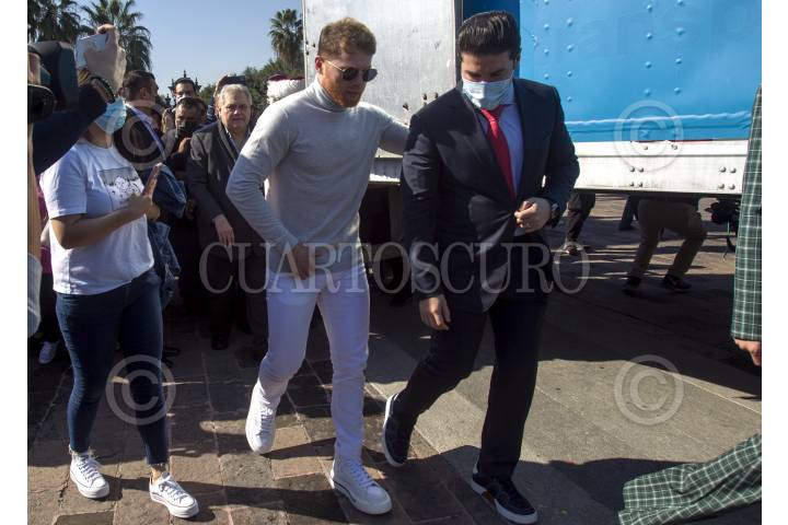 El boxeador Saúl "El Canelo" Álvarez, arribó a la ciudad de Monterrey para donar 5mil 500 juguetes al DIF estatal, fue recibido por Samuel García, gobernador de Nuevo León.