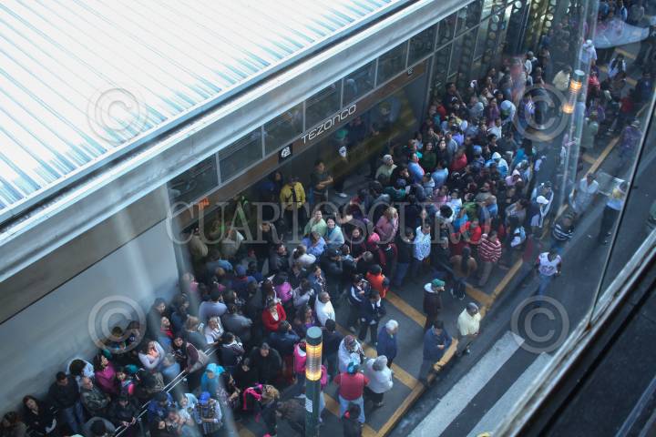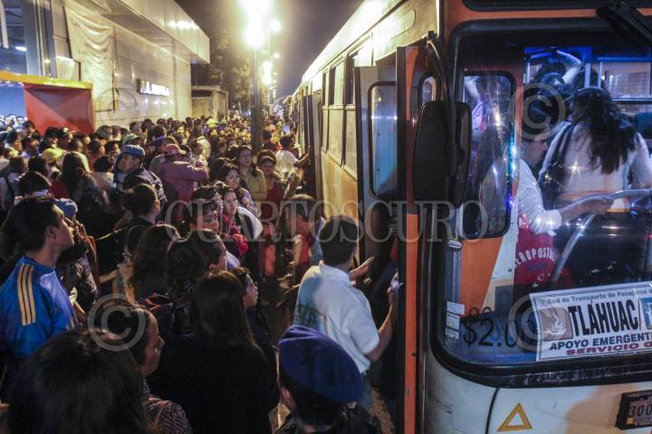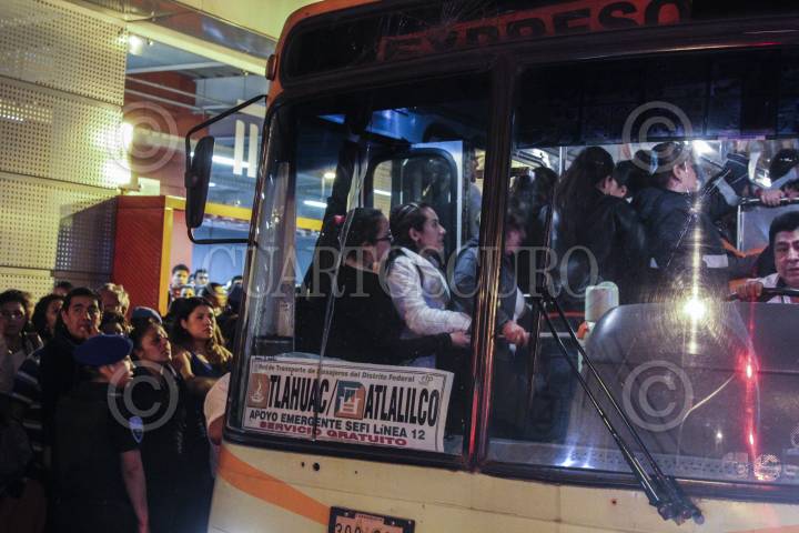 MÉXICO, D.F., 12MARZO2014.- Cientos de personas saturan los camiones RTP que trasladan a la gente como parte del apoyo emergente al Sistema de Transporte Colectivo Metro luego que este cerrara 12 de sus estaciones argumentando problemas en su construcción. El servicio de los camiones es temporal y gratuito para los cientos de personas que lostrasladan. FOTO: SAÚL LÓPEZ /CUARTOSCURO.COM