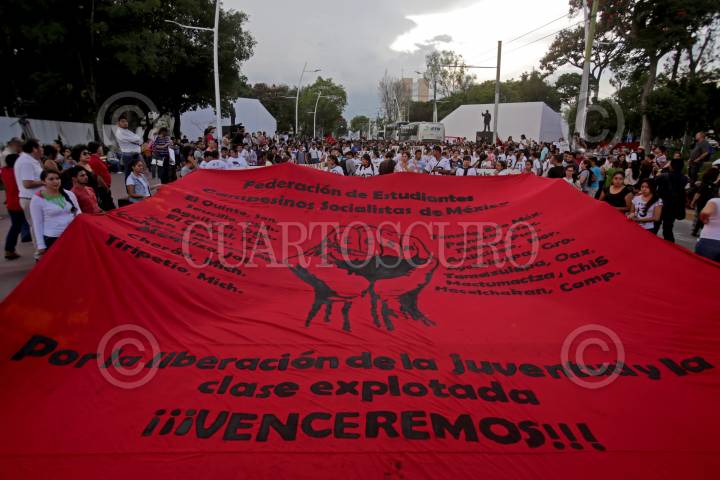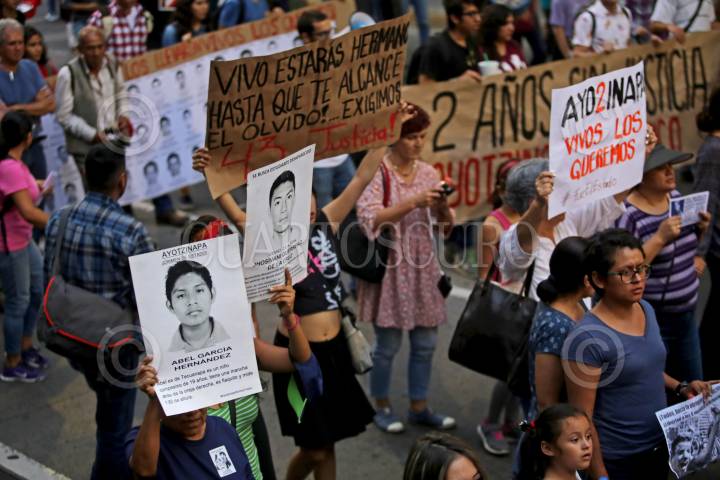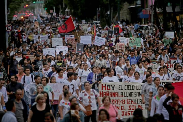 GUADALAJARA, JALISCO, 26SEPTIEMBRE2016.- Cientos de personas de diversas asociaciones sociales, marcharon del parque Revolución hasta la Plaza de la Liberación en una caminata lenta, para exigir la presentación con vida de los 43 estudiantes de la normal rural, Raúl Isidro Burgos de Ayotzinapa, ya que hoy se cumplieron dos años de su desaparición. FOTO : FERNANDO CARRANZA GARCIA / CUARTOSCURO.COM