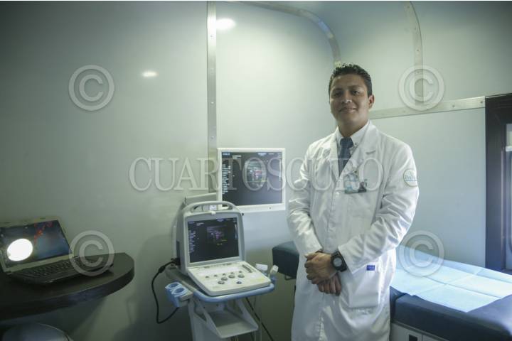 Un médico llama a un paciente para atenderlo dentro del Dr. Vagón.