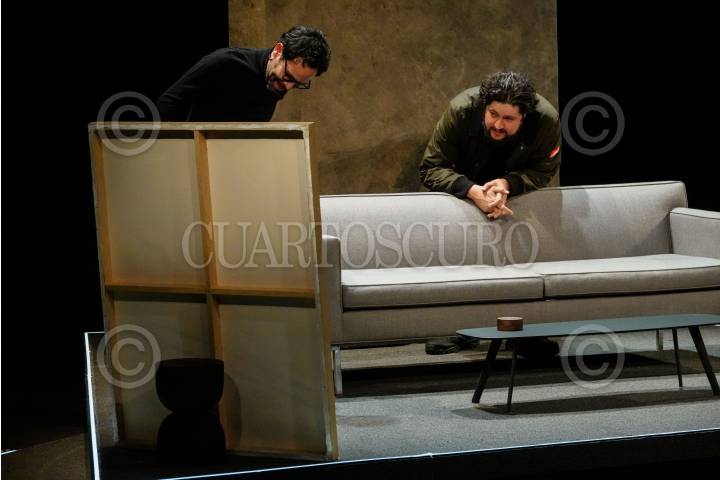 CIUDAD DE MÉXICO, 05MARZO2025.- Los actores Mauricio Isaac y Fernando Bonilla durante el estreno ARTE de Yasmina Reza en el Nuevo Teatro Libanés. FOTO: GALO CAÑAS/CUARTOSCURO.COM
