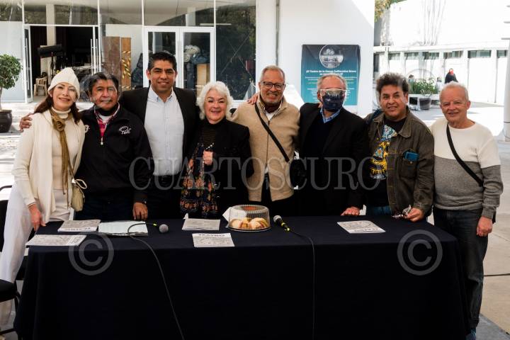 Leonardo Daniel Miranda, Isabel Quintanar y Mario Fiachi (centro) durante la conferencia de prensa en el Centro Cultural del Bosque sobre el XXXIV Encuentro Nacional de los Amantes del Teatro
