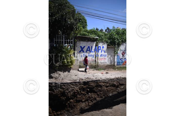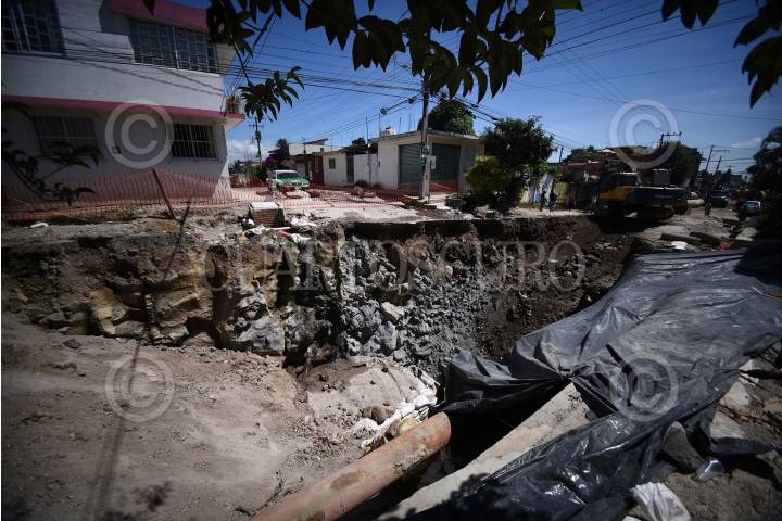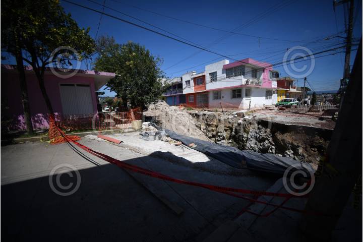 Las banquetas de las avenidas Ciudad de las Flores y José Núñez se derrumbaron debido a que se reblandecieron por las lluvias y los trabajos de introducción de tubos de drenaje.