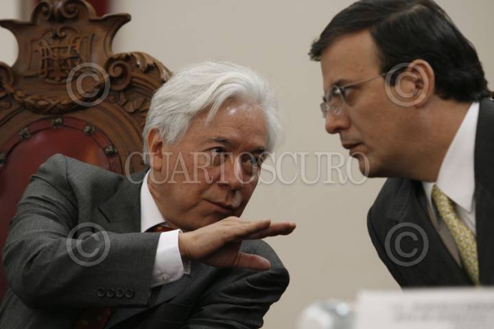 MÉXICO D.F., 12NOVIEMRBE2007.- Alex Dridicksson Secretario de educación del DF y el jefe de gobierno Marcelo Ebrard platican durante el Primer Foro Interinstitucional Metropolitano de Educación Media Superior que se realizó en el Palacio de Mineria. FOTO: RODOLFO ANGULO/CUARTOSCURO.COM