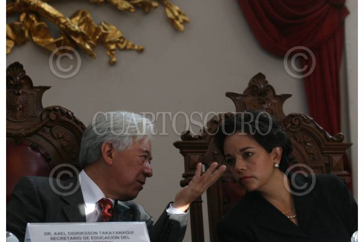 MÉXICO,D,F.,12NOVIEMBRE2007.-Lidia Ortega coordinadora del consejo académico del bachillerato de la UNAM, Alex Dridicksson Secretario de educación del distrito federal, durante la inauguración de "Foro Interinstitucional Metropolitano de Educación Media Superior" FOTO: SASHENKA GUTIERREZ/CUARTOSCURO.COM