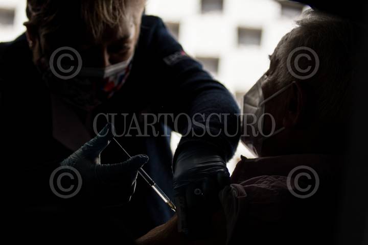 Una adulta mayor recibe la primer dosis de la vacuna de AstraZeneca contra Covid-19