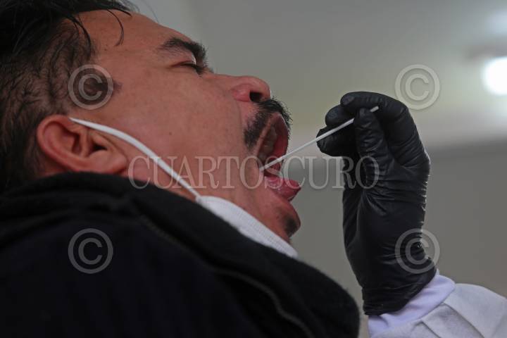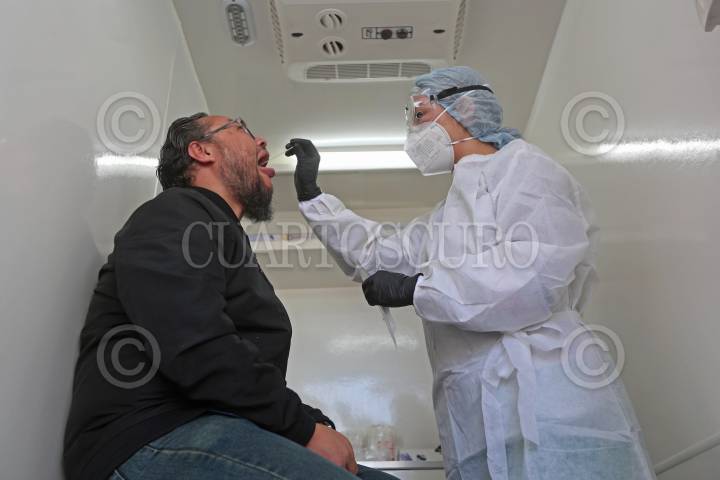 Una trabajadora de la salud, realiza una prueba de Covid a una persona, esto durante la inauguración de la Unidad Móvil para Pruebas Covid “Apolo”.
