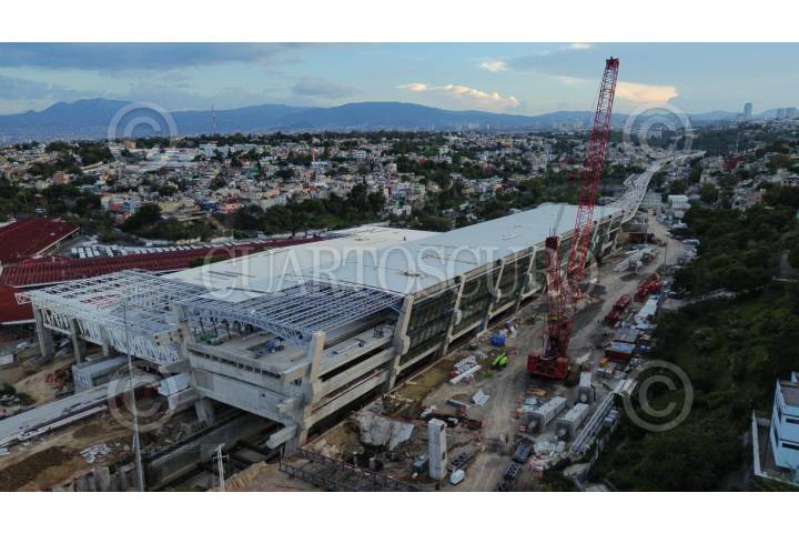 CIUDAD DE MÉXICO, 22JULIO2025.- Los trabajos de la terminal del Tren Interurbano México-Toluca, que conectará con la estación Observatorio del la línea 1 y la aplicación de la línea 12 del metro avanzan de manera considerable. En imagen aspectos panorámicos de la construcción. FOTO: ROGELIO MORALES /CUARTOSCURO.COM