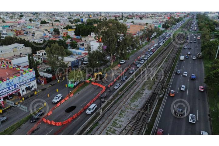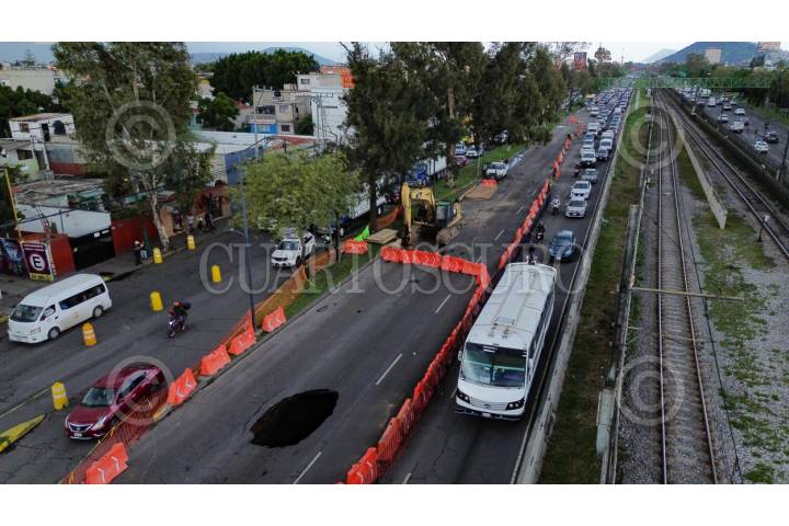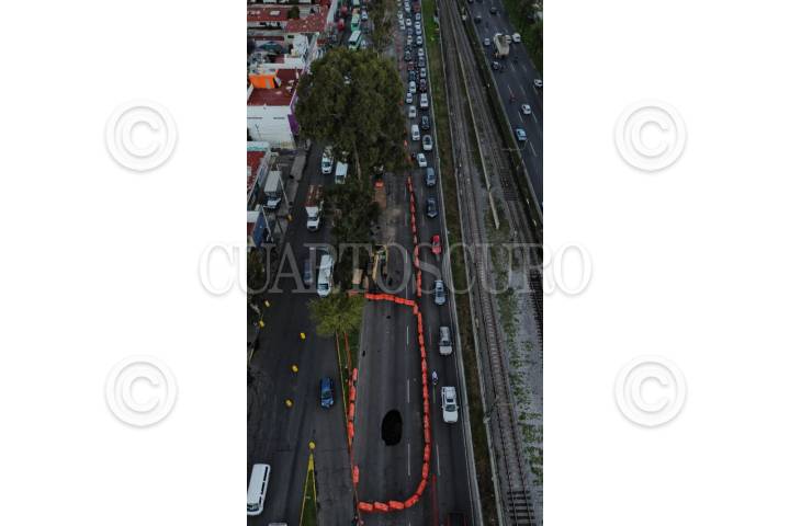 CIUDAD DE MÉXICO 14AGOSTO2025.- Se formó un socavón de la menos cuatro metros de ancho y 4 metros de profundidad en la Calzada Zaragoza a la altura de Canal de San Juan de la alcaldía Iztapalapa. FOTO:ROGELIO MORALES /CUARTOSCURO.COM
