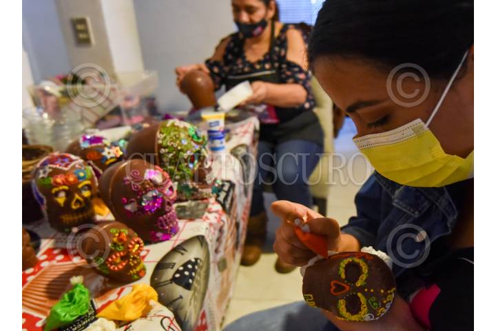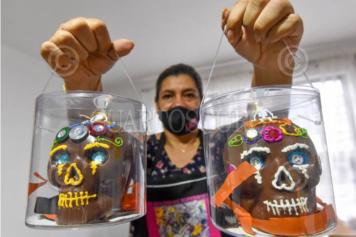 Calaveritas de amaranto decoradas como chocolate para el festejo del Día de Muertos