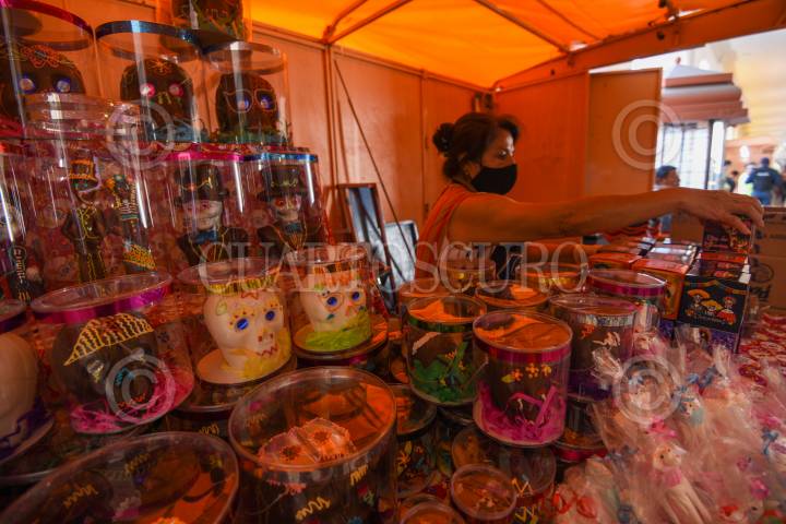 El jardín Juárez cada año en temporada de día de muertos se llena de puestos de alfeñiques y charamuscas, dulces tipicos de Guanajuato con ingrediente principal de azúcar con el que hacen una masa y dan forma desde frutas hasta figurillas para el altar de muerto y figuras de personajes