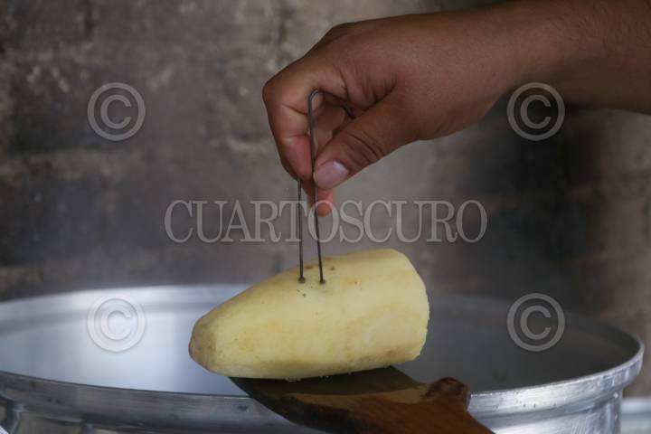 Juan Manuel revisa el precocido de un chayote para su proceso de dulce cristalizado, en Santa Cruz Alcapixca