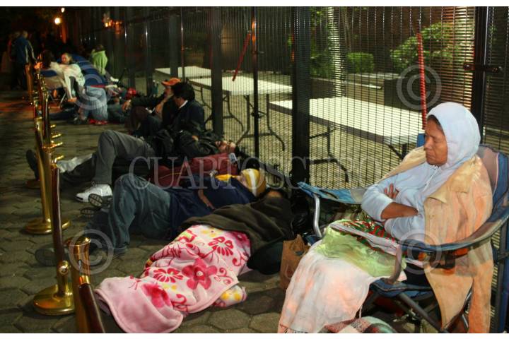 MÉXICO, D.F., 16JULIO2009.- Durante la madrugada, una fila de mas de 400 personas es lo que se percibe a las afueras de la embajada de Canada en México, esto por el nuevo anunció que dió dicho país sobre el nuevo visado para mexicanos que quieran viajar al norte del continente. FOTO: LUZ ACEVEDO/CUARTOSCURO.COM