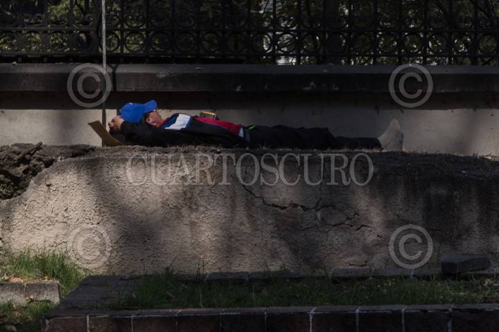 CIUDAD DE MÉXICO, 19MARZO2018.- Hombre duerme en el parque España ubicado en la colonia Condesa. FOTO: ANDREA MURCIA /CUARTOSCURO.COM