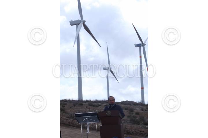 TECATE, BAJA CALIFORNIA, 09MARZO2010.- Felipe Calderón Hinojosa, Presidente de México, inauguró esta mañana el Parque Eólico "La Rumorosa", que se realizó en este estado. FOTO: ALFREDO GUERRERO/CUARTOSCURO.COM