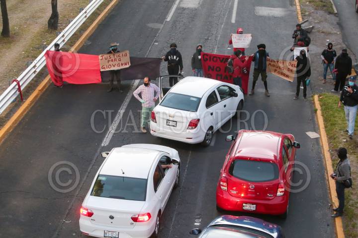 Estudiantes de la Facultad de Humanidades de la UAEM, que continúa en paro bloquearon Paseo Tollocan en la ciudad de Toluca en protesta por el asesinato de Giovanni López.