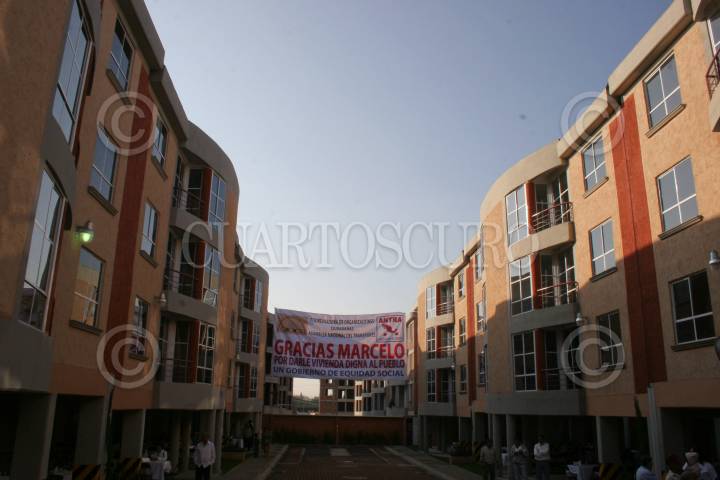 MÉXICO, D.F., 24JULIO2009.- Marcelo Ebrard jefe de gobierno del Distrito Federal, hizo entrega 94 casas sustentables en Tláhuac, las cuales cuentan con mecanismos sustentables como calentadores solares y de gas; plantas de tratamiento de aguas jabonosas para sanitarios y sistema ahorrador de agua en regaderas FOTO: RICARDO CASTELAN/CUARTOSCURO.COM
