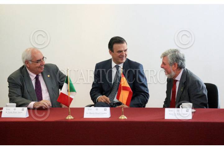 MÉXICO, D.F., 15ABRIL2010.- Vicente Álvarez Areces, Presidente del Principado de Asturias, junto a Marcelo Ebrard Casaubon, Jefe de Gobierno durante el encuentro de visita en el país para participar en II Foro Empresarial México-Asturias. FOTO: CUARTOSCURO.COM