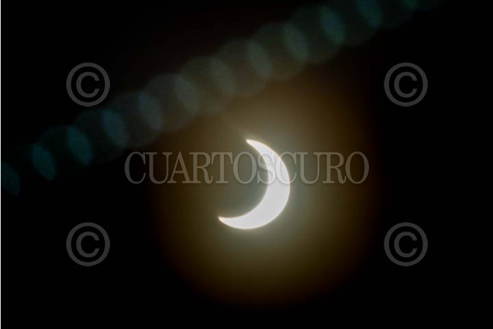 SAN CRISTÓBAL DE LAS CASAS, CHIAPAS, 14OCTUBRE2023.- Aspecto del eclipse anular de sol que se observó desde la entidad sureste a través de un filtro polarizado. FOTO: ISABEL MATEOS/CUARTOSCURO.COM