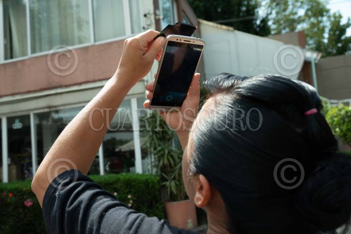 CIUDAD DE MÉXICO, 14OCTUBRE2023.- Personas a lo largo de la ciudad se dieron breves minutos para apreciar el eclipse anular de sol que fue visible en la mayoría del territorio nacional. En punto de las 11:09 horas el fenómeno astronómico se encontró en su punto, con una cobertura de 60?l sol sobre la capital. FOTO: GALO CAÑAS/CUARTOSCURO.COM