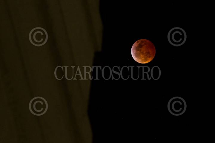 CIUDAD DE MÉXICO, 20AGOSTO2018.- La primer súper luna del año iluminada con un tono de color rojizo, debido a su conjunción con el fenómeno conocido desde la edad media como “luna sangre de lobo” y un eclipse lunar. FOTO: GALO CAÑAS /CUARTOSCURO.COM