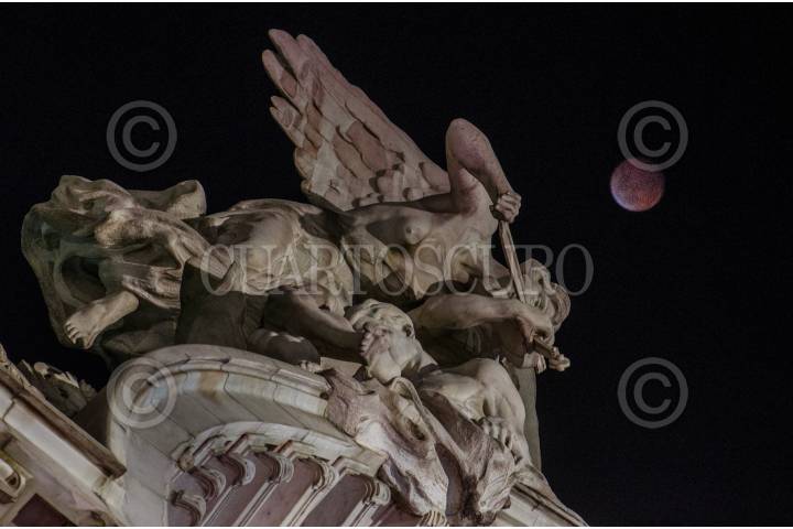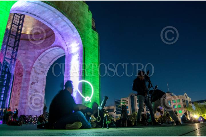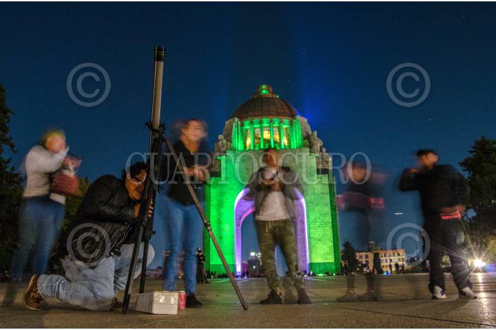CIUDAD DE MÉXICO, 14MARZO2025.- Cientos de personas se dieron cita en la glorieta del Ángel de la Independencia para fotografiar el eclipse total lunar en la capital del país. El fenómeno tiñó de un color rojizo en su totalidad y fue en punto de las 00:59 horas que alcanzó su punto máximo. FOTO: GALO CAÑAS/CUARTOSCURO.COM