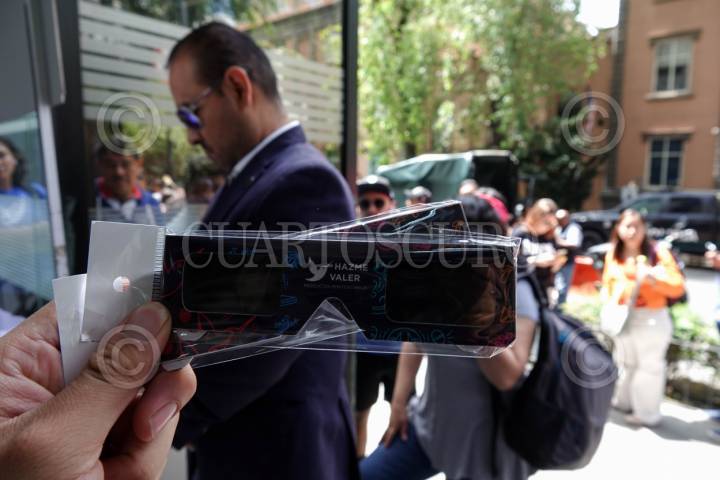 CIUDAD DE MÉXICO, 04ABRIL2024.- El furor por el eclipse de sol del próximo lunes 08 de abril ha lanzado a los capitalinos a buscar filtros especial para poder apreciarlo. Una larga fila de personas se observó en las inmediaciones de la Secretaria de Seguridad Ciudadana (SSC) para adquirir los lentes especiales para su observación directa. Los anteojos fueron diseñados por internas del penal de Santa Martha Acatitla y ensamblados en el Reclusorio Oriente como parte del programa Hazme Valer.  FOTO: GALO CAÑAS/CUARTOSCURO.COM